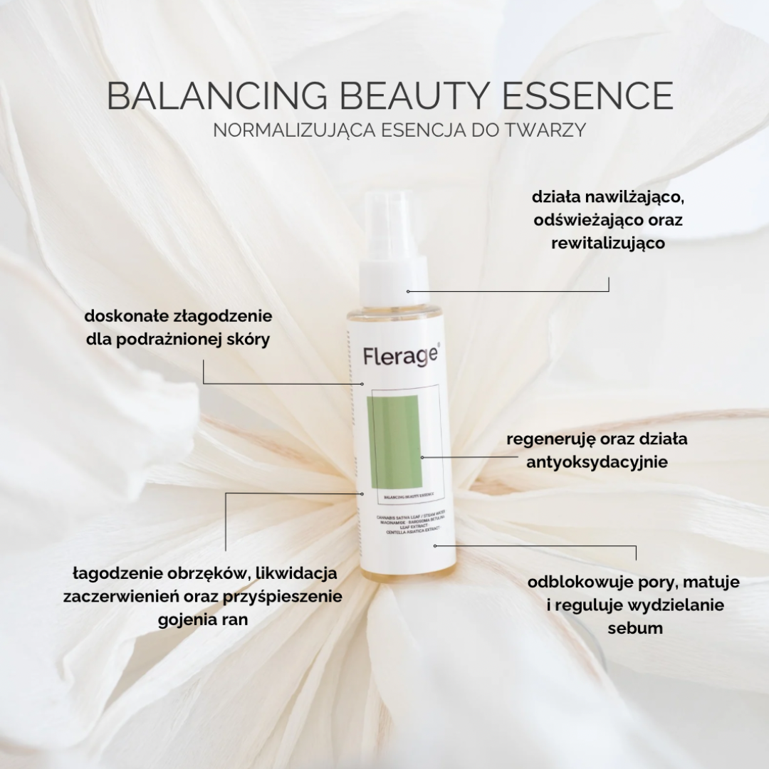 Balancing Beauty Essence to normalizująca esencja do twarzy, która idealnie łączy działanie tonizujące, oczyszczające i regenerujące. Przeznaczona jest do kompleksowej pielęgnacji skóry, przywracając jej zdrowy i piękny wygląd, jednocześnie zapobiegając nadmiernemu świeceniu się. To powiew świeżości i promienności dla Twojej skóry!